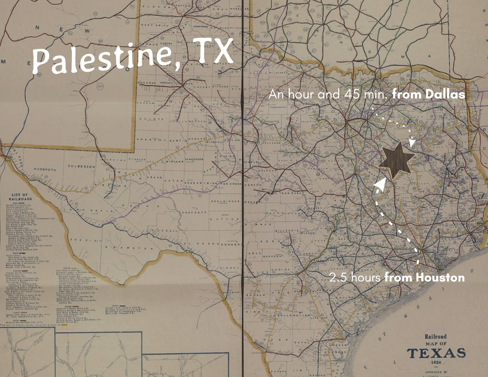 This is a railroad town. Palestine’s rapid growth through the mid-1800s was a product of the ever-elongating Texas rail lines, built spike by spike, across the hilly eastern quarter of the state.