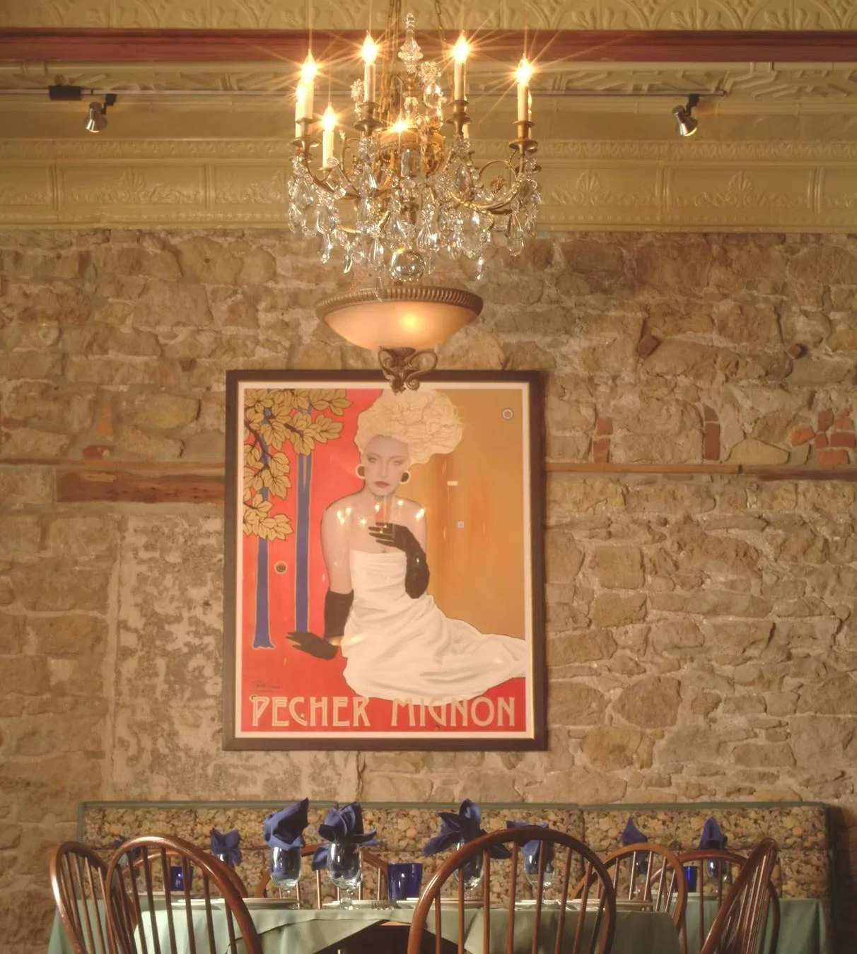 This is a good post-dinner spot, low-lit with lantern-like fixtures suspended from the neatest pressed tin ceiling.