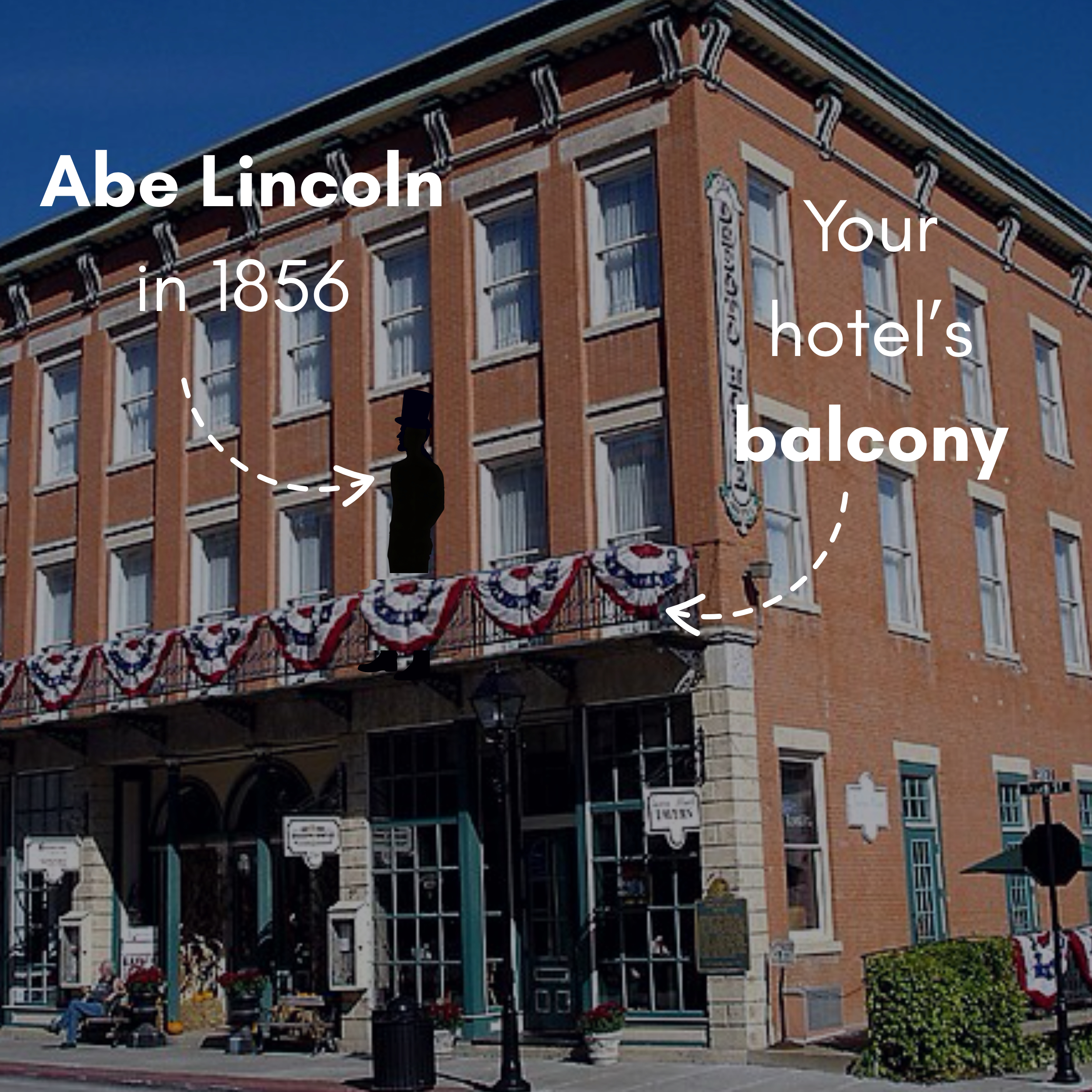 Stay in a storied 1850s hotel, with a balcony that hosted a speechifying Abraham Lincoln.
