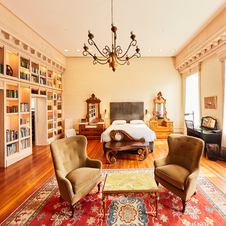 The property is spread over a pair of historic 19th century buildings, with meticulously preserved features: spans of exposed brick, tin ceilings (an Ovenrightist favorite, always) and eclectic design features; all restored beautifully.
